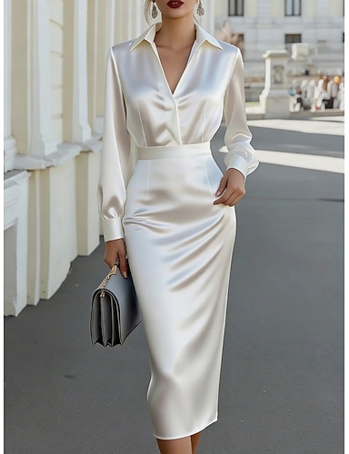 Tubino Colonna Abito Lunghezza alla caviglia Abito Bianco Vestito da Festa Abito da Cocktail Abito da cerimonia per signora Manica Lunga Scollo a V Elegante Minimalista Formale Ospite di nozze Serata