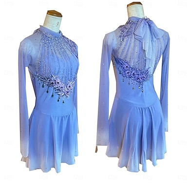 Abito da pattinaggio artistico Per donna Ragazze Pattinaggio sul ghiaccio Vestito Azzurro cielo Patchwork Foro per il pollice Spandex Rete Alta elasticità Allenamento Competizione Vestiti da