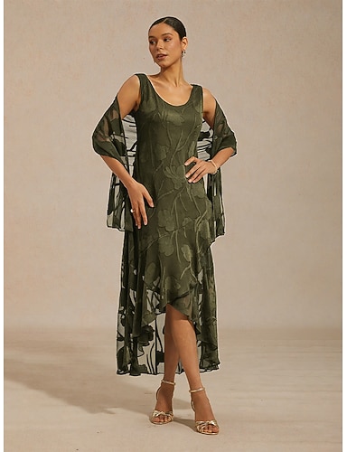 Set di abiti da donna a due pezzi abito midi con giacca abito elegante a linea maniche a ¾ festa cocktail stampa floreale scollo a V invitata a matrimoni quotidiano blu verde vestibilità regolare