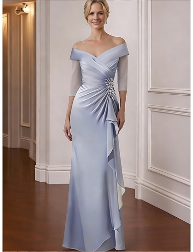 Abito lunghezza fino al pavimento abito per invitata a un matrimonio abiti formali abito da sera abito per madre della sposa maniche 3/4 scollo tondo elegante invitata a un matrimonio con colore
