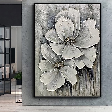 pittura a olio astratta di fiori bianchi spessi moderna 100% fatta a mano su tela bianca pittura arte della parete per soggiorno decorazione senza cornice cornice allungata pronta per essere appesa o