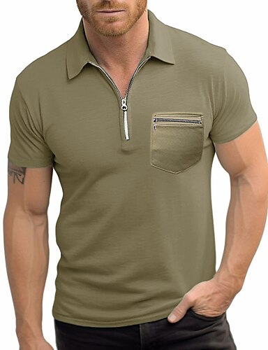 Per uomo Polo con zip Camicia da golf Golf Esterno Sport Bavero Chiusura lampo quarto Manica corta Di tendenza Moderno Liscio Cerniera Tasche Estate Standard Nero Blu marino Verde militare Grigio