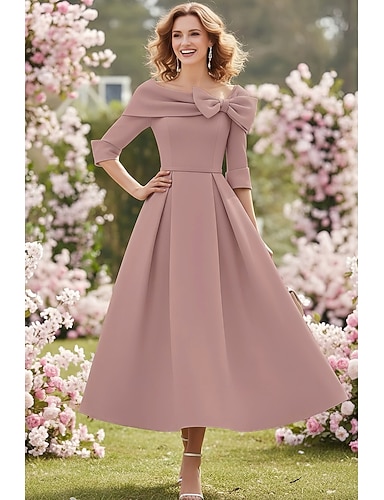 Tubino Colonna Lunghezza alla caviglia Lunghezza Tè Abito da invitata a nozze Abito Formale Abito Derby Abito da cerimonia per signora Manica Corta Scollo a Barca Senza Spalle Elegante Vintage
