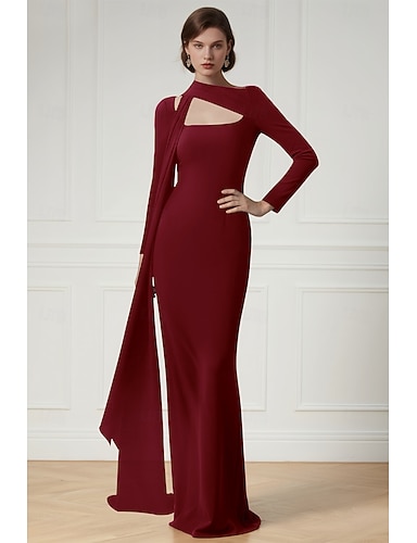 Abito a tubino colonna a lunghezza terra Abito formale Abito da sera Abito da sera Elegante Vintage Maniche lunghe Collo barca Prom Festa con fiori ricamati perline paillettes