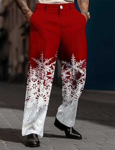 Natale Per uomo Fiocco di neve Colore sfumato Pantaloni Pantaloni Eleganti Pantaloni da Abito Misura del girovita medio Moda Casual Feste Ferie Pantaloni eleganti con vestibilità comoda e tasche