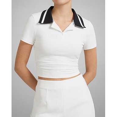 Per donna Tinta unita Maglia atletica Polo da golf Canotta Maglia da tennis Manica Corta Elastico Traspirante Tennis Golf Pickleball Colletto Polo Maglietta Bianco Abbigliamento da tennis