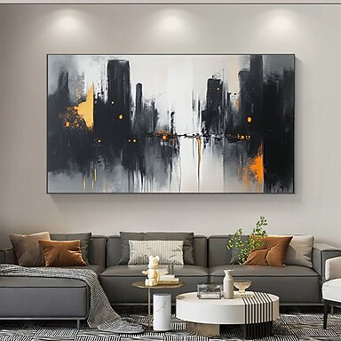 dipinto a mano grande dipinto a olio astratto paesaggio urbano nero e oro arte murale pittura moderna decorazione murale neutra moderna decorazione paesaggio urbano grigio