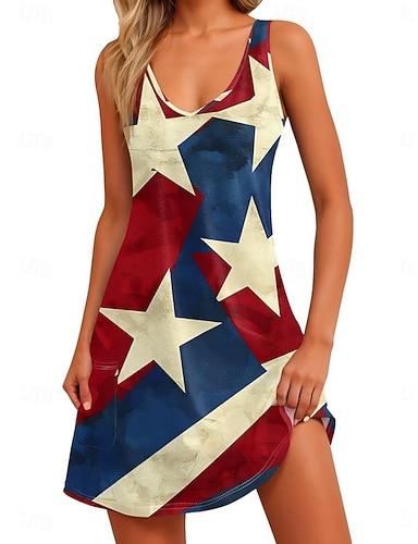 Giorno dell'Indipendenza Per donna Mini Abito Vestito Casual Abito Sottoveste Moda Classico Moderno All'aperto Vacanza Uscire Vestibilità regolare Stelle e strisce Senza Maniche Scollo a V Blu Rosso