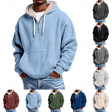 Per uomo Felpa con cappuccio Felpa con cappuccio a nido d'ape Maglione Felpa con cappuccio e zip corta Felpa con cappuccio in pile Nero Bianco Verde militare Borgogna Blu marino Con Cappuccio Semplice