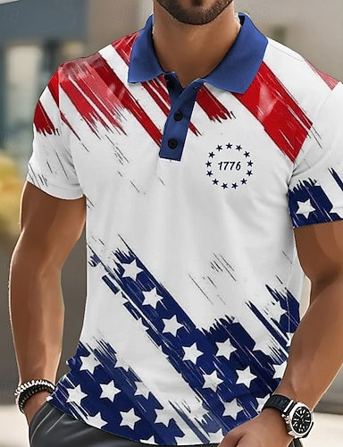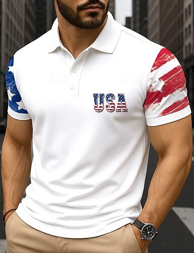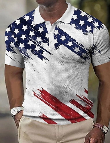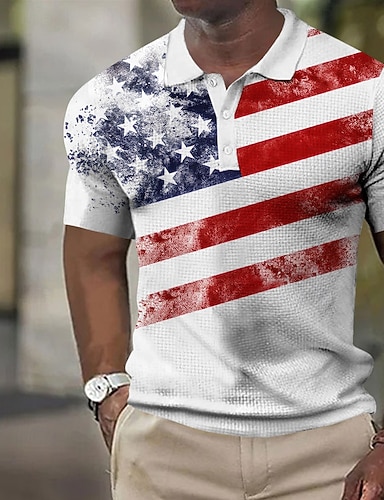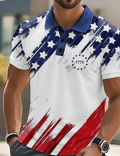 4 luglio 2026 250° Giornata dell'indipendenza Per uomo Bandiera Americana Polo Maniche Corte Colletto Polo Bavero Casual Quotidiano Festival Bottoni Estate Bianco Rosso Blu marino