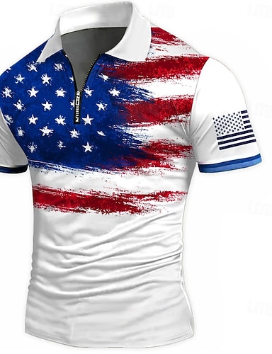 4 luglio 2026 250° Per uomo Bandiera Americana Polo con zip Manica Corta Magliette polo Collo ripiegato Casual Quotidiano Casuale Con zip Stampa 3D Estate Nero