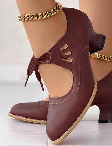 Ballerine Mary Jane vintage da donna marroni - comode scarpe a punta tonda con grazioso fiocco &suola spessa e carrarmato per il lavoro in ufficio e l'abbigliamento casual quotidiano &moda scolastica