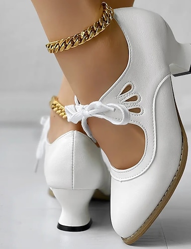 Scarpe da sposa vintage con tacco mary jane color avorio in pizzo e fiocco per spose che vogliono sposarsi in giardino