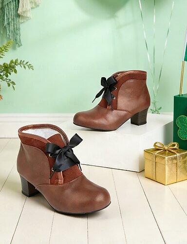 stivali da donna in pizzo all'uncinetto marrone a metà polpaccio con tacchi a gattino e fiocchi - stivali eleganti in stile vittoriano edoardiano anni '90 per donne, ideali per abiti autunnali,