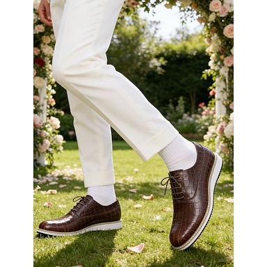 scarpe eleganti da uomo con stampa coccodrillo marrone – scarpe stringate in pelle di lusso, perfette per matrimoni, eventi formali e abbigliamento da ufficio