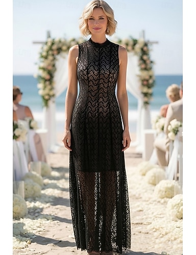 Due Pezzi Linea ad A Lunghezza al pavimento Abito da invitata a nozze Abiti da festa Elegante Senza Maniche Collo Alto Matrimonio Ospite di nozze con Pizzo