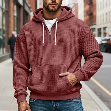 Per uomo Felpa con cappuccio Felpa con cappuccio e cerniera a un quarto Felpa con cappuccio tattica Compatto Nero Vino Blu marino Verde scuro Cammello Con cappuccio Liscio Sportivo Giornaliero Per