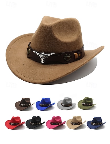 Cappello da cowboy western da uomo con fascia a testa di toro – fedora vintage in feltro a tesa larga per rodeo, stile outdoor e regalo di Natale