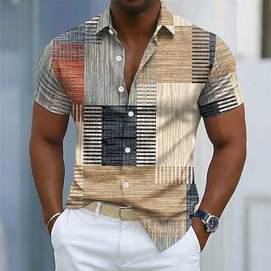 Per uomo Geometrico Blocco di colori Patchwork Camicia Camicia con Bottoni Camicia casual Manica Corta Moda Casual Abbigliamento casual alla moda Vacanza Primavera Autunno Collo ripiegato Stampa 3D