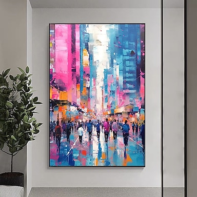Pittura astratta fatta a mano di paesaggi urbani Pittura a olio dipinta a mano Arte della parete Paesaggio urbano originale Pittura a olio su tela per la decorazione della parete del soggiorno