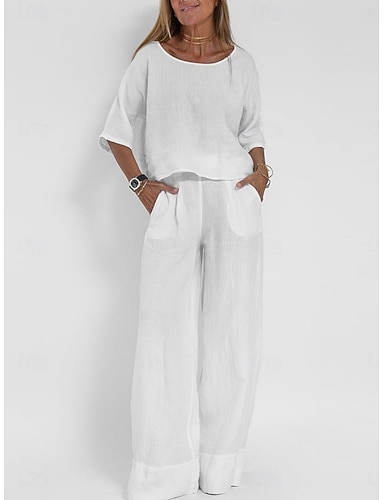 Per donna Set di Pantaloni Finto cotone e lino Senza Maniche Girocollo Tinta unica Moda Streetwear Casuale Quotidiano All'aperto Blu Bianco Giallo Primavera & Estate Vestibilità comoda