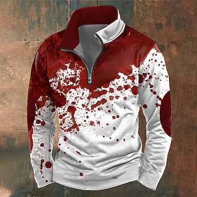 Per uomo Schizzi di sangue Macchie di sangue Felpa Casual Manica Lunga Collo Alto Feste Ferie Club Rosso Blu Viola Verde Rosso rosa Cerniera Zip a un quarto Autunno Inverno progettista S M L XL XXL