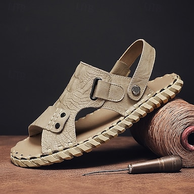 sandali da uomo in similpelle con cinturino regolabile color cachi chiaro, comode scarpe aperte per la spiaggia estiva e le uscite informali