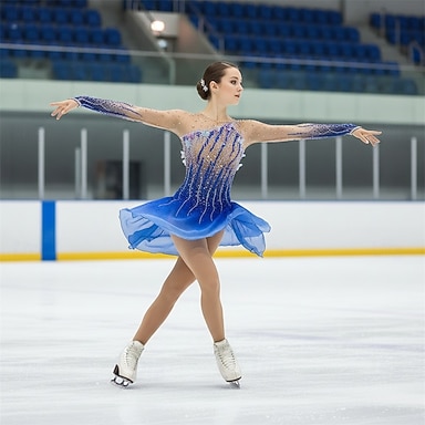 Vestito da pattinaggio artistico Per donna Da ragazza Pattinaggio sul ghiaccio Vestiti Blu Foro per pollice tintura sfumata Retato Elastene Elasticizzato Addestramento Da allenamento Professionale