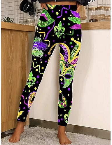 Leggings da donna Carnival Active Vacanza Moda a lunghezza totale Vita Alta Pantaloni Graphic Geometric Stampa Alta Comfort Outdoor Comodo Elasticizzato Festival Nero Estate Primavera Slim Fit