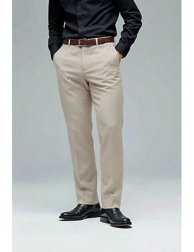 Uomo Cotone Lino Pantaloni Eleganti Pantaloni Affari Riunione Quotidiano Leggero Formale Nero Blu marino scuro Beige Primavera & Estate Pantaloni Tinta unica Vestibilità regolare Lungo Inelastico