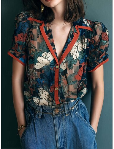 Per donna Camicia Stampato Floreale Grafico Elegante Vintage Tropicale Mezza Manica Scollo a V Top Regolari Quotidiano Ferie Abbigliamento mare Blu Rosa Rosso Arancione Verde Estate Primavera