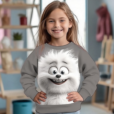 Da ragazza 3D Pop art Animali Felpa Manica lunga Primavera Autunno Di tendenza Essenziale Bambino 4-12 anni Girocollo Esterno Informale Giornaliero Standard