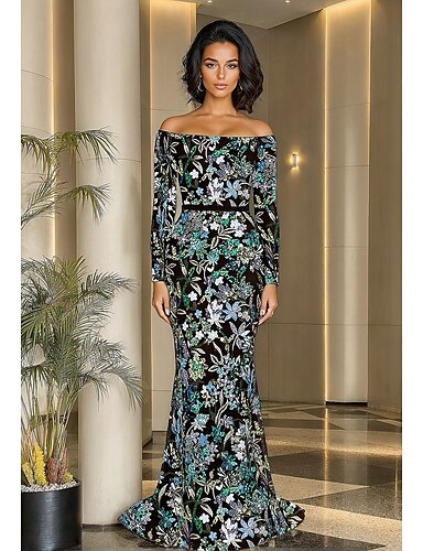 Sirena Tromba Lunghezza alla caviglia Vestito da Festa Abito da Cocktail Abito da invitata a nozze Abito da cerimonia per signora Manica Lunga Girocollo Elegante Formale Serata Formale Ricevimento di