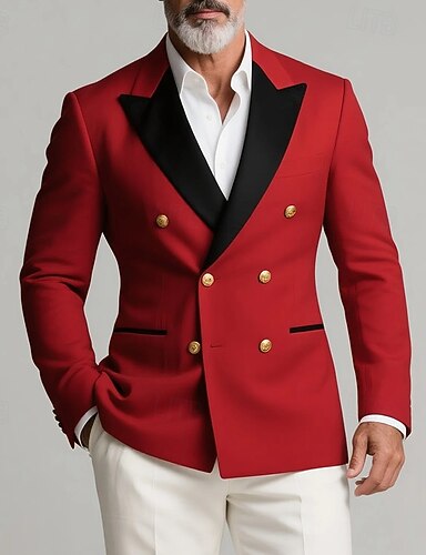 Per uomo Giacca blazer Collare di chiusura Moda Festa Tinta unita Blazer Rosso Vestibilità su misura Doppiopetto Sei Bottoni