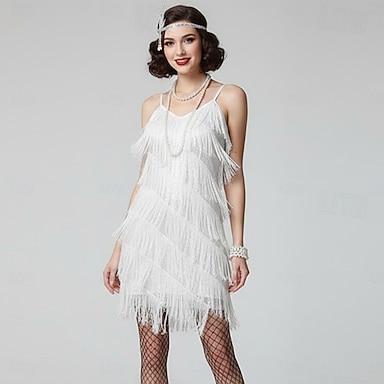 Set Anni Ruggenti Anni 1920 Mini Abito Flapper Abiti Costume da festa con accessori Senza maniche Il grande Gatsby Invitato al matrimonio Frangia con nappe Tinta unica Nappa Scollo a V Costume Per