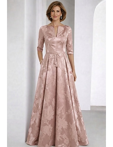 Linea ad A Lunghezza al pavimento Abito da invitata a nozze Abito Formale Abito svasato Abito da cerimonia per signora Mezza Manica Scollo a V Elegante Vintage Formale Jacquard con Fiocco/Fiocchi