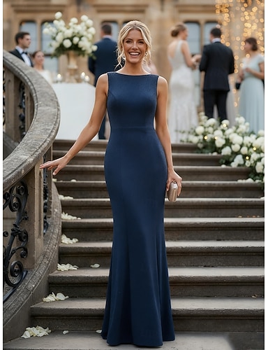 Abito da ospite per matrimoni a sirena tromba fino al pavimento Abiti formali Abito da sera Abito per la madre della sposa senza maniche scollo a barchetta elegante formale per ospiti di matrimonio