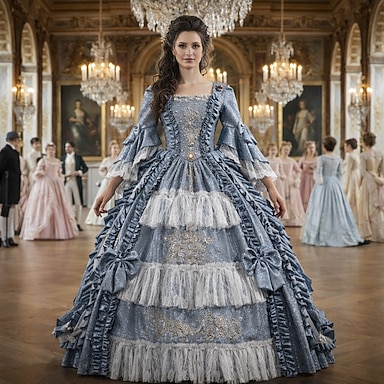 Vintage Rococò Rinascimento Maxi Vestito Normale A sbuffo Principessa Sposa Pieghettato Con Volant Principessa Girocollo Costume Per donna Halloween Carnevale Mascherata Feste Halloween Performance