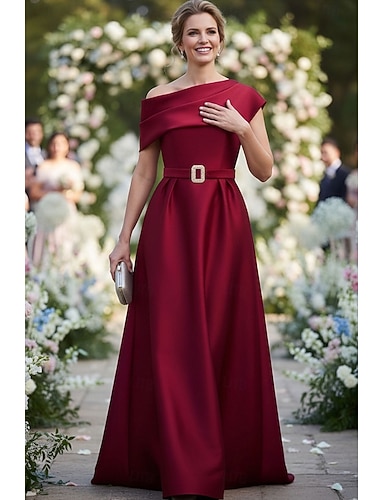 Linea ad A Lunghezza alla caviglia Abito in Raso Abito da invitata a nozze Abito Formale Abito da cerimonia per signora Manica Corta Senza Spalle Elegante Semplice Formale Ospite di nozze Cocktail