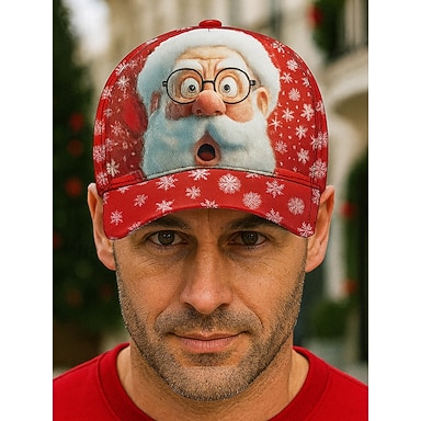 berretto da baseball da uomo con stampa di Babbo Natale, cappello regolabile con fiocco di neve rosso, accessorio invernale per feste e abbigliamento da esterno