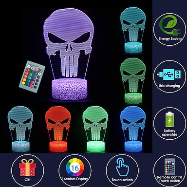Halloween Punitore Teschio 3D Luce Notturna 16 Cambia Colore Led Regalo Di Halloween Per L'arredamento Della Camera Dei Bambini