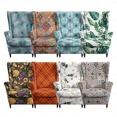 fodera per poltrona con schienale alto, fodera in poliestere elasticizzato con stampa floreale, a righe o geometrica, protezione per mobili per soggiorno