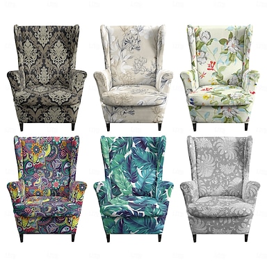 fodere per poltrone con schienale alto stampate, fodere per poltrone in poliestere elasticizzato con motivi floreali/a righe/geometrici, protezioni decorative per mobili