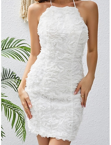 Per donna Mini Abito Abito in Pizzo Abito Bianco Vestito Casual Moda Moderno Abito sexy All'aperto Vacanza Feste Taglia piccola Floreale Senza Maniche All'americana Bianco Estate Primavera