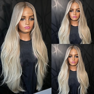 Parrucche brasiliane con chiusura in pizzo 5x5, capelli umani vergini, biondo cenere ombré, parrucca frontale in pizzo 13x4 con attaccatura naturale dei capelli per donne, senza colla