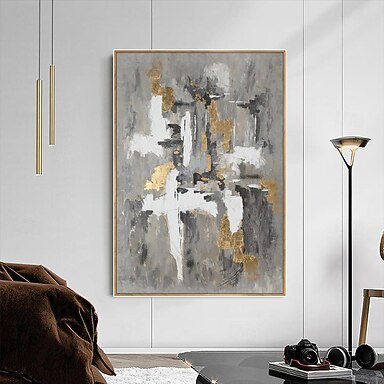 dipinto a olio fatto a mano su tela, decorazione da parete, moderno, grigio oro astratto per la decorazione della casa, dipinto arrotolato senza cornice e non allungato
