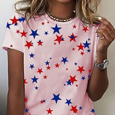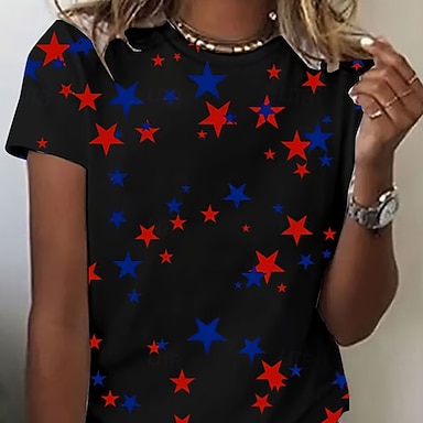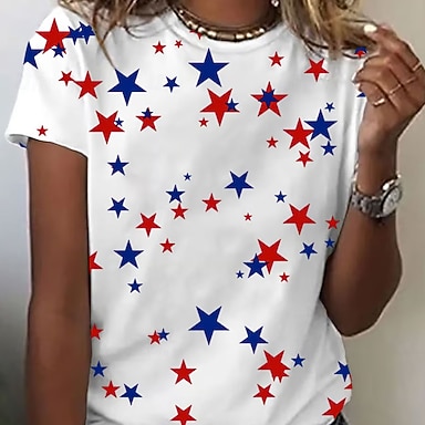Giorno dell'Indipendenza T-shirt americana anniversario patriottico da donna con stampa grafica bandiera americana vintage elegante classica a manica corta scollo rotondo regolari top quotidiani