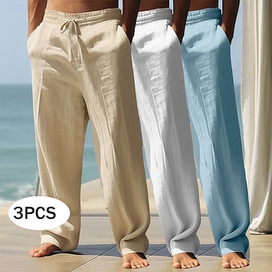 Per uomo Pantaloni di Lino Pantaloni Pantaloni Estivi Pantaloni Larghi Pantaloni da Spiaggia Coulisse Elastico in vita Confezione multipla Tinta unica Comodità Traspirante Lunghezza intera Quotidiano