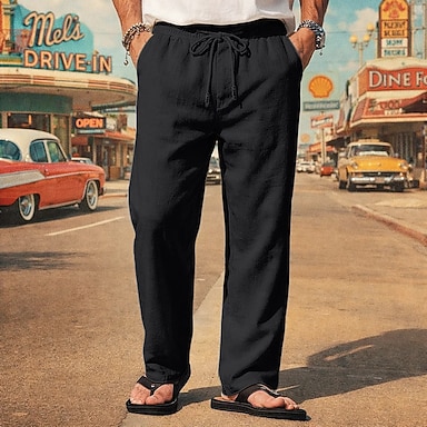 Per uomo Pantaloni di Lino Pantaloni Pantaloni Estivi Pantaloni Larghi Tasca Gamba Dritta Semplice Comodità Confortevole Lunghezza intera Casuale Quotidiano Affari Vacanza Moda Nero Bianco Inelastico