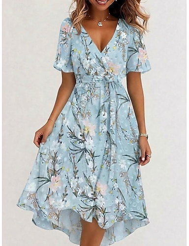 Per donna Abito Midi Vestito in Chiffon Abito Floreale Abito Estivo Elegante Moderno Vacanza Ferie Tè Vestibilità regolare Floreale Manica Corta Scollo a V Blu Rosa Verde Estate Primavera